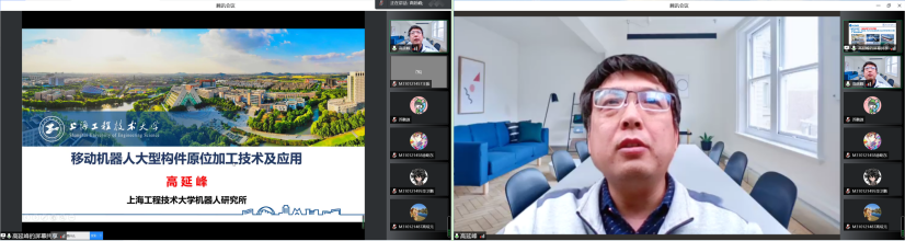 4月29日下午2点,崔国华教授以《机器人智能协作与健康评估关键技术及应用》为专题进行报告。他详细介绍了大数据驱动智能制造背景下的特种作业机器人技术,面向航空航天、汽车、智能建造等领域的并/混联机器人、协作机器人、移动操作一体化机器人关键技术,工业机器人整机健康评估和故障诊断技术等;以及研究团队在搅拌摩擦焊机器人、双臂协作打磨、建筑物钻孔移动操作一体化机器人、机器人健康评估和故障诊断试验系统等方面的研究进展等。