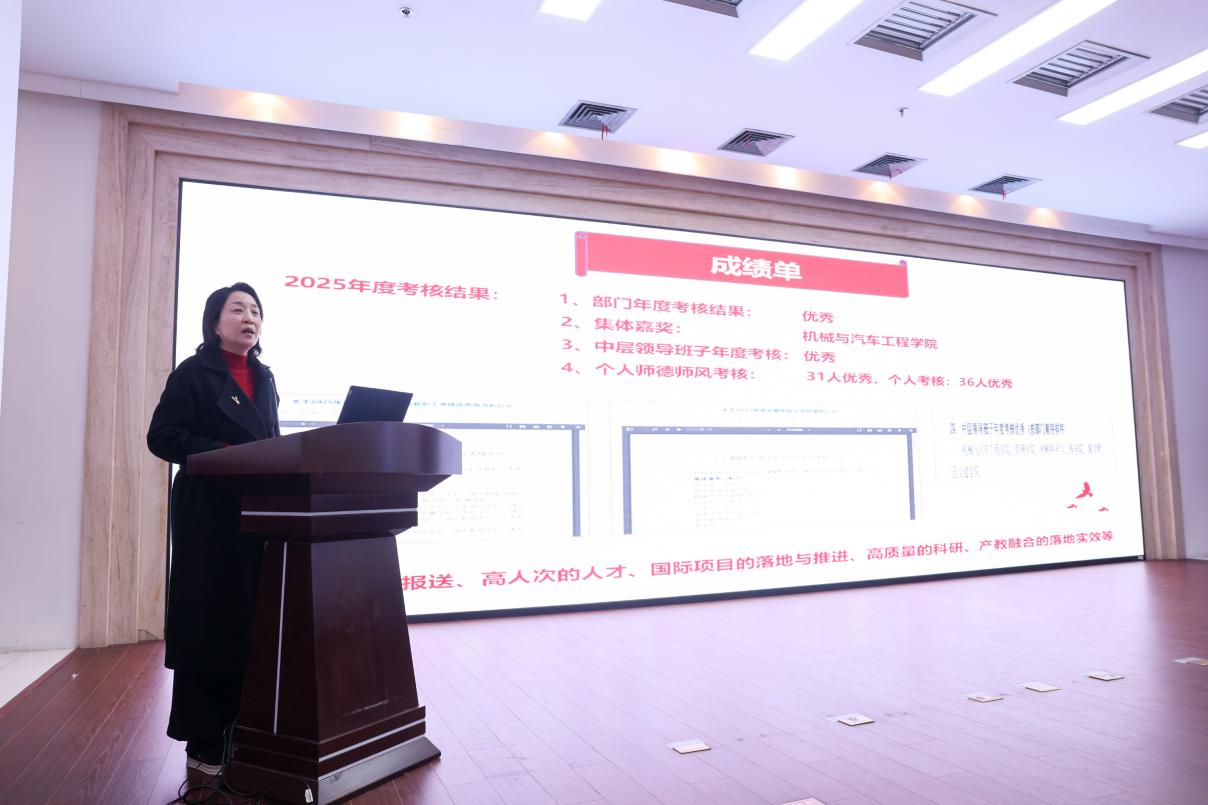 方宇院长从“十四五”指标完成情况、2025年重亮点工作等方面作学院工作总结,并强调2026年要在党建引领、科研攻关、国际交流、本硕博一体化育人体系、“十五五”规划等方面踔厉奋发。