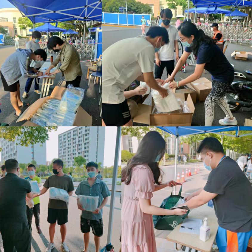学院党委书记虞蓉4月29日进驻学校后,了解到学院在校师生急缺口罩的现实困境,全面动员学院资源,积极筹措防疫物资。上海奥奇科技发展基金会在得知此讯息后,积极与学院对接,采购了12000只口罩,第一时间组织力量运往我校。5月8日,学院全体驻校人员将口罩进行清点、分装,并高效组织楼层长进行分发,将口罩发放到了全院2734名在校学生手中。
