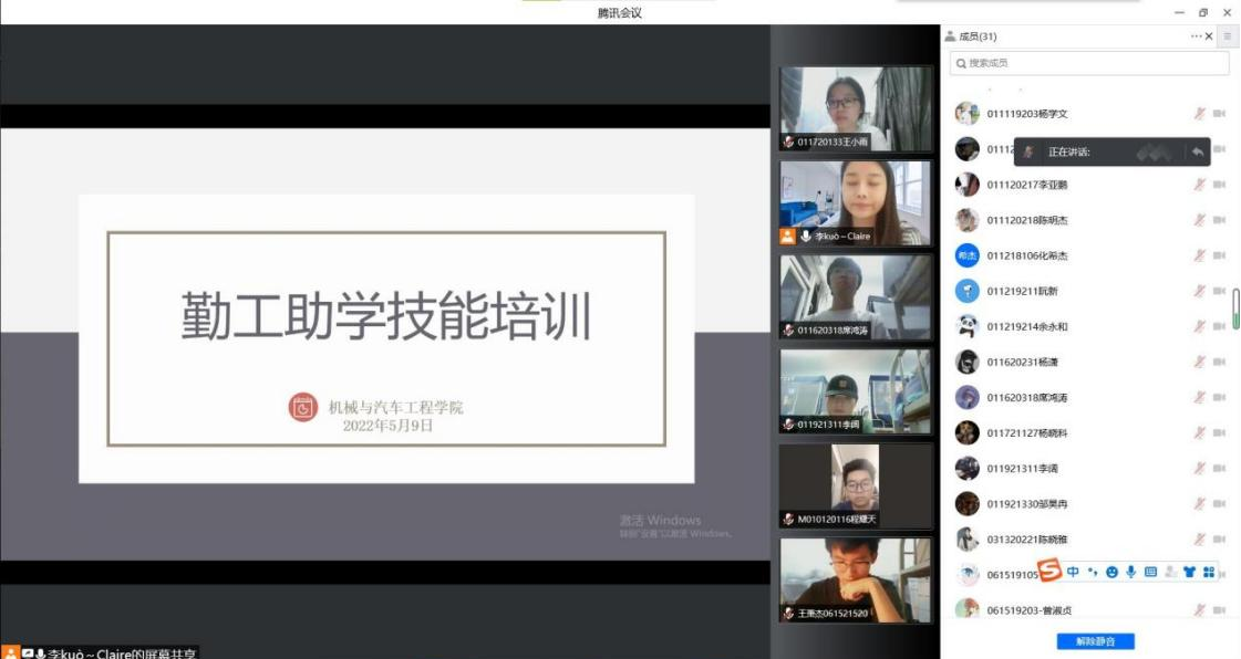 为深化资助育人工作实效,提高勤工助学学生职业素养和工作技能,发挥勤工助学在大学生能力拓展、精神激励长效机制中的重要育人作用,2022年5月9日,学院勤工助学工作站通过腾讯会议组织召开了云上勤工助学技能培训。培训由学院勤工助学指导教师李适老师主持,学院全体31名在岗勤工助学学生参加了本次培训。