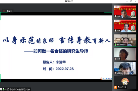 7月28日,PP电子游戏网站邀请山东大学机械工程学院博导、副院长宋清华教授开展题为“以身示范培良师,言传身教育新人——如何做一名合格的研究生导师”的线上导师座谈会。学院领导班子、全体研究生导师参加了会议本次导师座谈会,分管研究生工作副院长郭辉主持会议。