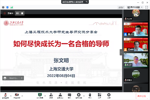 8月4日,PP电子游戏网站邀请上海交通大学特聘教授、博导张文明教授开展题为“如何尽快成长为一名合格的导师”的线上导师培训会。学院领导班子、全体研究生导师参加了会议本次导师培训会,院长方宇主持会议。