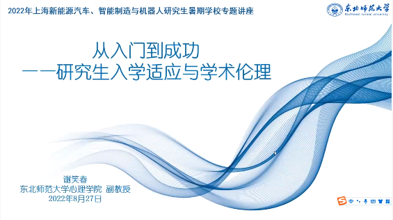 2022年8月27日13:00-15:00,通过华为云会议视频平台,东北师范大学副教授、中国心理学会网络心理专业委员会委员、国际行为发展研究会(ISSBD)会员谢笑春为暑期学校做题为《从入门到成功——研究生入学适应与学术伦理》的线上专题讲座。讲座由PP电子游戏网站党委副书记王东阳主持。