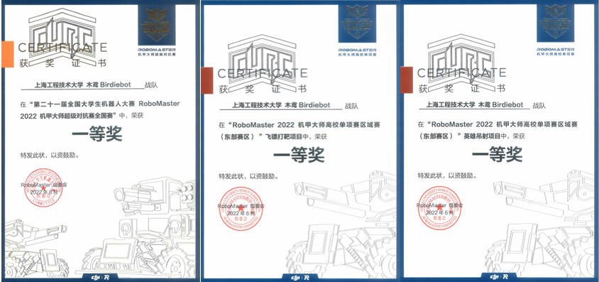 三项全国赛奖状诠释了木鸢Birdiebot战队备赛一年的汗水和成效。新的赛季即将开启,战队全体成员将一如既往地做好各种参赛备赛准备,迎接下一个技术挑战,向更高的荣誉巅峰发起进攻。
