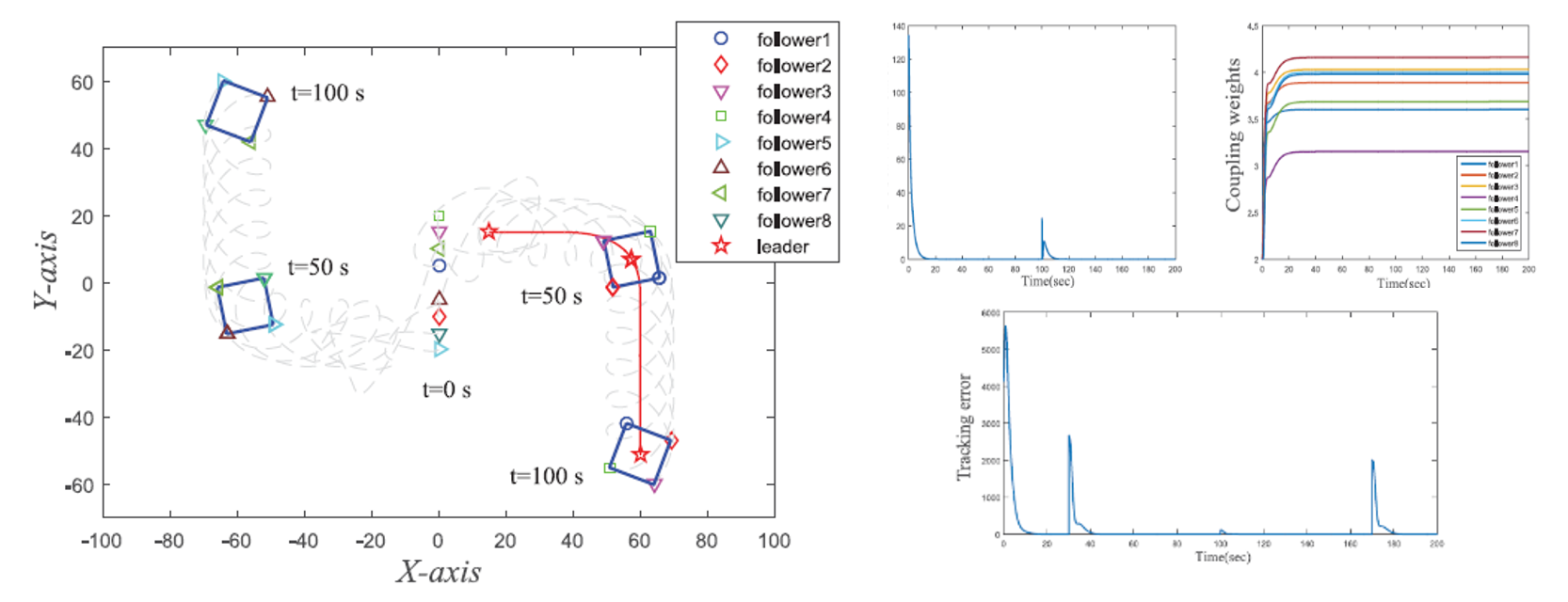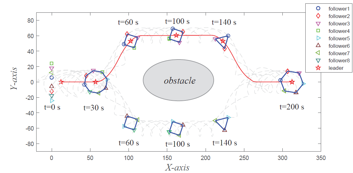 近些年来随着多无人机、多无人车等协同控制技术在军事和民用中发挥着越来越重要的作用,集群智能控制技术得到了飞速的发展,其中分布式多智能体编队控制技术是当前的一个研究热点。该文提出了一种新型的分布式状态观测器设计方案,使得多个智能个体在未知领导者输入的情况下实现一种具有对抗关系的编队队形。这一种编队队形包含两个位置时刻改变的子编队,且它们的编队几何中心具有对称关系。该控制算法仅利用智能体间的输出反馈信息,避免了通信网络图拉普拉斯矩阵的特征值的使用,从而可以实现分布式编队控制。在仿真部分,通过使用多无人车编队的实例展示了该分布式算法的可靠性。该项研究得到国家自然科学基金项目(61991412618032566200320761873318)的资助,合作者为华中科技大学苏厚胜教授和PP电子游戏网站李晓航副教授。