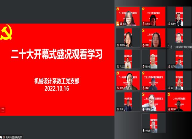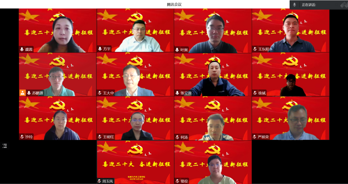 10月16日上午10点,PP电子游戏网站党委线上召开中心组专题学习,认真收看中国共产党第二十次全国代表大会开幕会。学院中心组全体成员、学院民盟盟员、九三学社会员等统战人员共同参会。