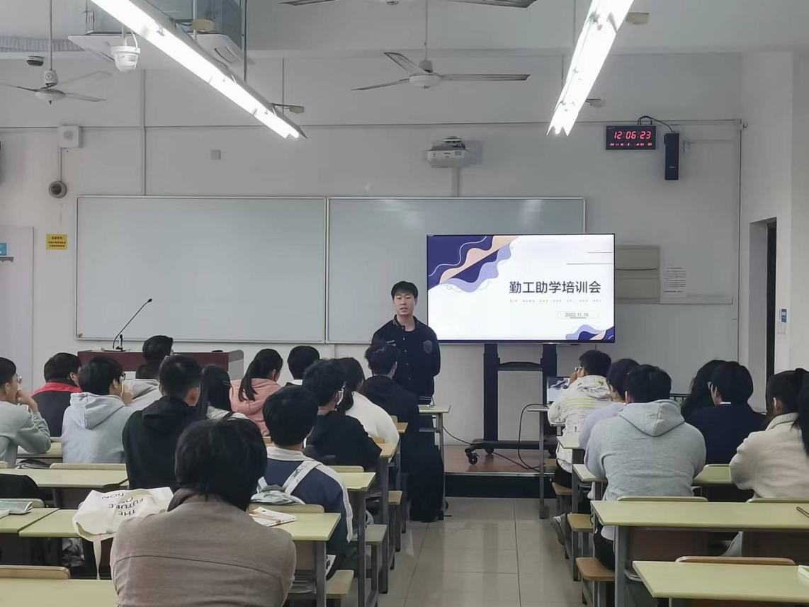 为深入学习宣传贯彻党的二十大精神,不忘立德树人初心,进一步提升勤工助学学生职业素养及工作能力,加强勤工助学岗位管理,2022年11月16日,学院勤工助学工作站在教学楼B110室组织召开了勤工助学岗位培训会。学院31名学生参加了培训会,覆盖全院在岗勤工助学全体学生,培训会议由学院勤工助学指导教师李适和刘献博主持进行。
