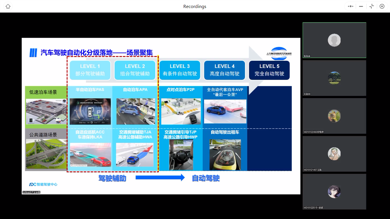 张栋林博士“智能网联汽车的开发与验证”报告首先介绍了上汽集团创新研究开发总院的情况,并以经历、企业和专业知识相结合的方式,系统地阐明了智能汽车驾驶自动化的发展与上汽集团在智能网联汽车方面的开发与验证工作。最后,张博士提出了智能网联汽车的思考与展望,激发了同学们向科研进军的兴趣和信心。
