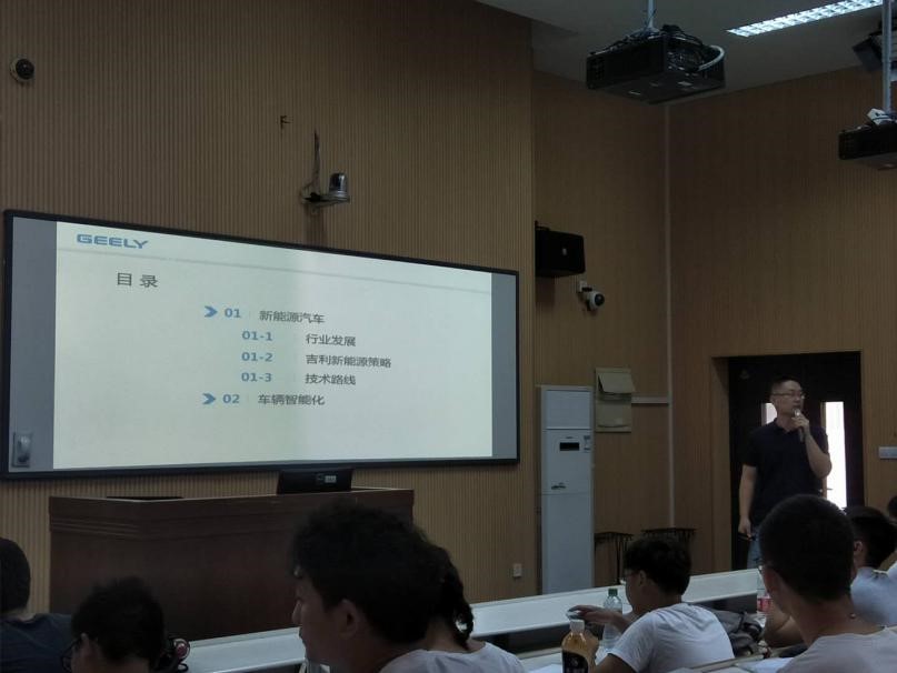 伴随着学员的热烈掌声,王博士开始了《新能源汽车与车辆智能化》专题报告。首先,他向学员们介绍了新能源汽车行业现状及趋势。随后,他又向学员们详细讲述了吉利新能源汽车策略及技术路线,从国家发展战略的大环境出发,具体分析了不同种类的新能源汽车的特点和技术优势。通过对不同总成的关键技术进行分析,全面介绍了新能源汽车行业存在的具体问题及对未来新能源汽车发展的展望。