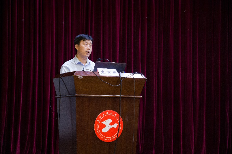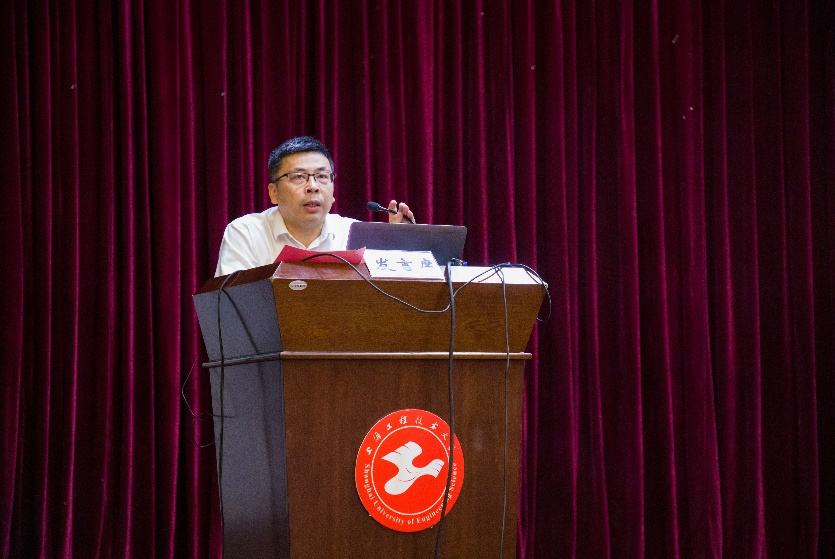 导师代表、汽车工程系系主任邢彦锋教授发言。他从全程导师的角度,为新同学描绘大学的蓝图。邢老师介绍了学院教学特色,希望同学们把握形势、明确目标、认真学习、锐意进取,追求卓越;从适应、规划、独立思考与大学精神等角度,寄语新生在大学期间学会学习、学会做人、学会做事。
