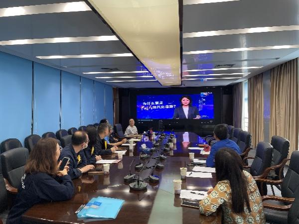 参观后,双方进行了座谈交流。首先,介绍了各自党支部建设情况,就党建经验进行分享交流。然后,机电系教工支部书记朱姿娜老师带领所有党员共同学习了二十大精神中的“中国式现代化”,通过视频讲解、交流研讨等形式,更深入地学习了中国式现代化的内涵,以及为什么要走中国式现代化道路。学习结束后,双方本着“资源共享、优势互补”的原则,为发挥基层党组织的战斗堡垒作用,共同签署了党建共建协议书,就共同夯实组织基础、促进双方发展、开展科研交流等多方面进行校企党建共建。