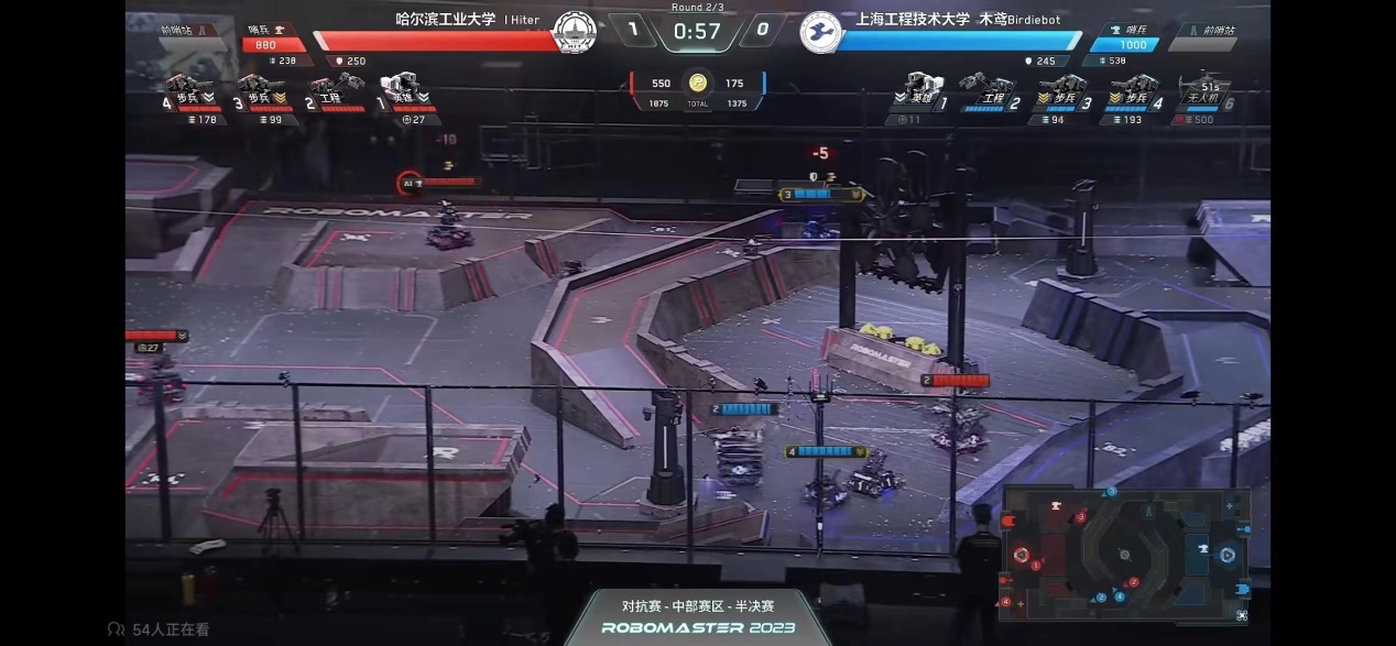 本次超级对抗赛•中部区域赛,PP电子游戏网站学生科创中心机械创新基地联合教务处组织34名学生参赛。赛制采用小组循环赛和淘汰赛方式。木鸢Birdiebot战队在小组赛(BO2)中通过精妙绝伦的机械设计、众志成城的团队配合以及行云流水的操控技术均以2:0的战绩打败桂林信息科技学院GIRT战队、福建师范大学Pikachu战队、西南石油大学铁人战队,以小组赛第一的成绩出线,此番操作可圈可点获得官方专业人员的一致称赞。在16进8淘汰赛(BO3)时,工程操作手任力维同学高烧不退,在团队的鼓励和支持下,他凭借着自身坚强的意志吃着退烧药、贴着退烧贴、身披毛毯带病参赛,不但成功地为团队稳定地输出经济,还作为步兵的研发代表拿到了第三场的MVP,最终以2:0的战绩打败中国矿业大学CUBOT战队。在8进4淘汰赛(BO3)中,战队一鼓作气,再次以2:0的战绩打败西安电子科技大学IRbot战队,勇闯四强。在半决赛(BO3)中交战曾获2022年全国赛一等奖的哈尔滨工业大学IHiter战队,因实力悬殊无奈进入季军争夺战。但在季军争夺战(BO5)中,战队创造了英雄的双对狙场面,这一场不寻常的交战使现场瞬间燃爆,获得了无数观众的欢呼声,最终以3:0的战绩突破自我、首夺季军。