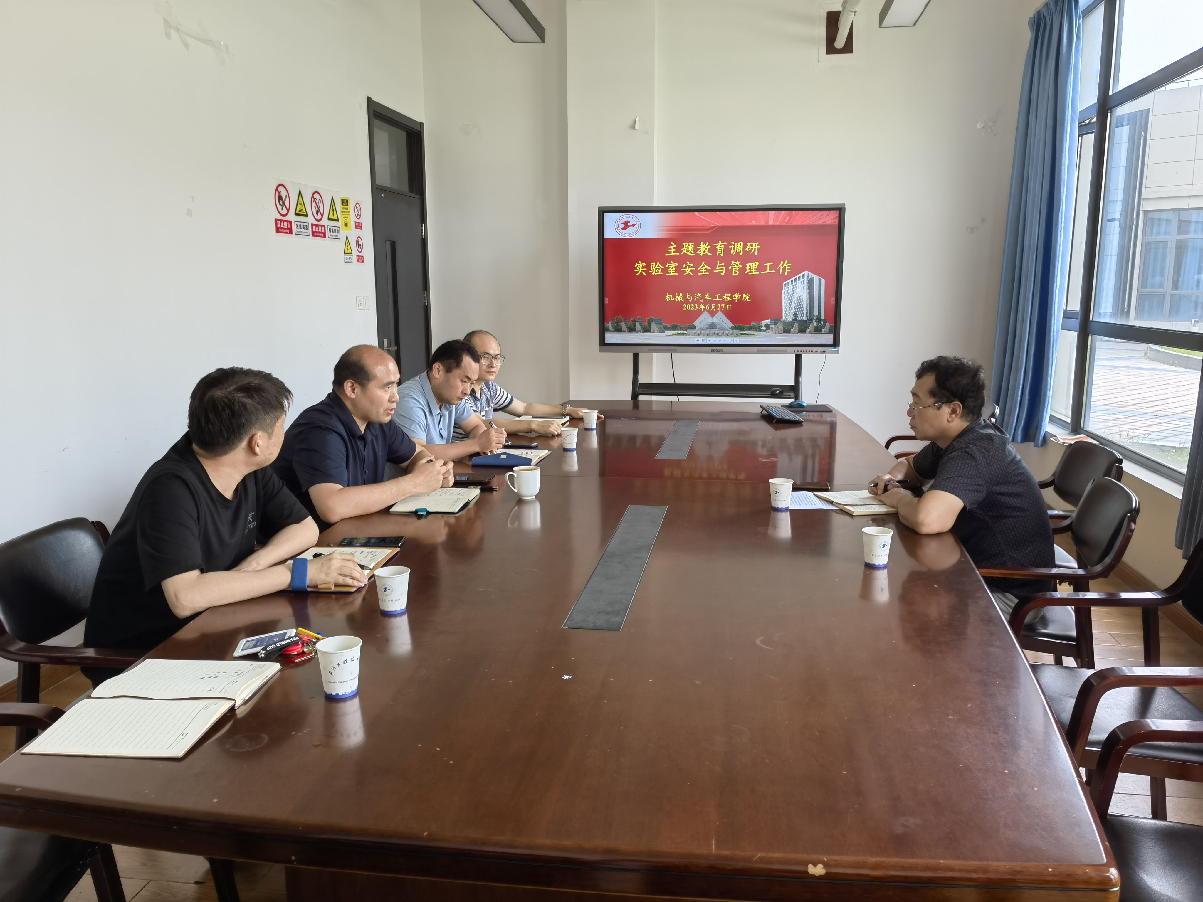 刘新田副院长详细介绍了学院常规安全工作内容,围绕实验室日常安全管理、实验人员管理岗位职责、安全检查制度、制定《实验室安全环保管理实施细则》等方面,做了详细的阐述。同时与王镇副处长就学院相关安全制度、学生安全教育、安全隐患整改等方面开展充分讨论。