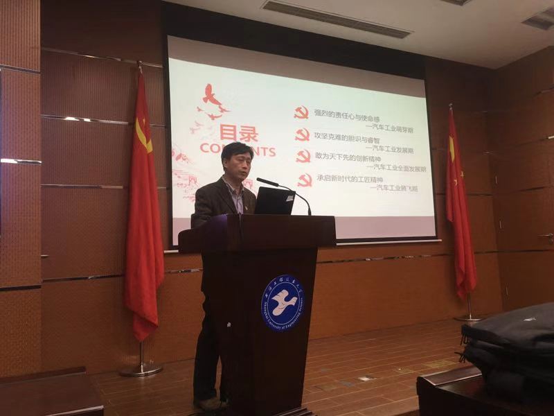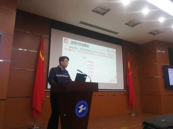 为讲述中国汽车制造从无到有、从弱到强、从制造到创造的伟大发展历程,展现一代又一代汽车人创新发展的精神品质,激励当代学生不忘初心、刻苦学习。11月13日下午在航飞楼一楼报告厅,汽车工程系教工党支部邢彦锋、刘新田、张恒运、徐屾和杨皓五位老师,为学校第三教学点第72期入党积极分子班上了一堂 “伟大工程”系列党课。此次伟大党课总共分为5个部分,分别是世界汽车发展史、中国汽车发展史、中国共产党人精神品质和创造精神、新能源汽车发展与合力体制以及工程大汽车人的初心和使命。