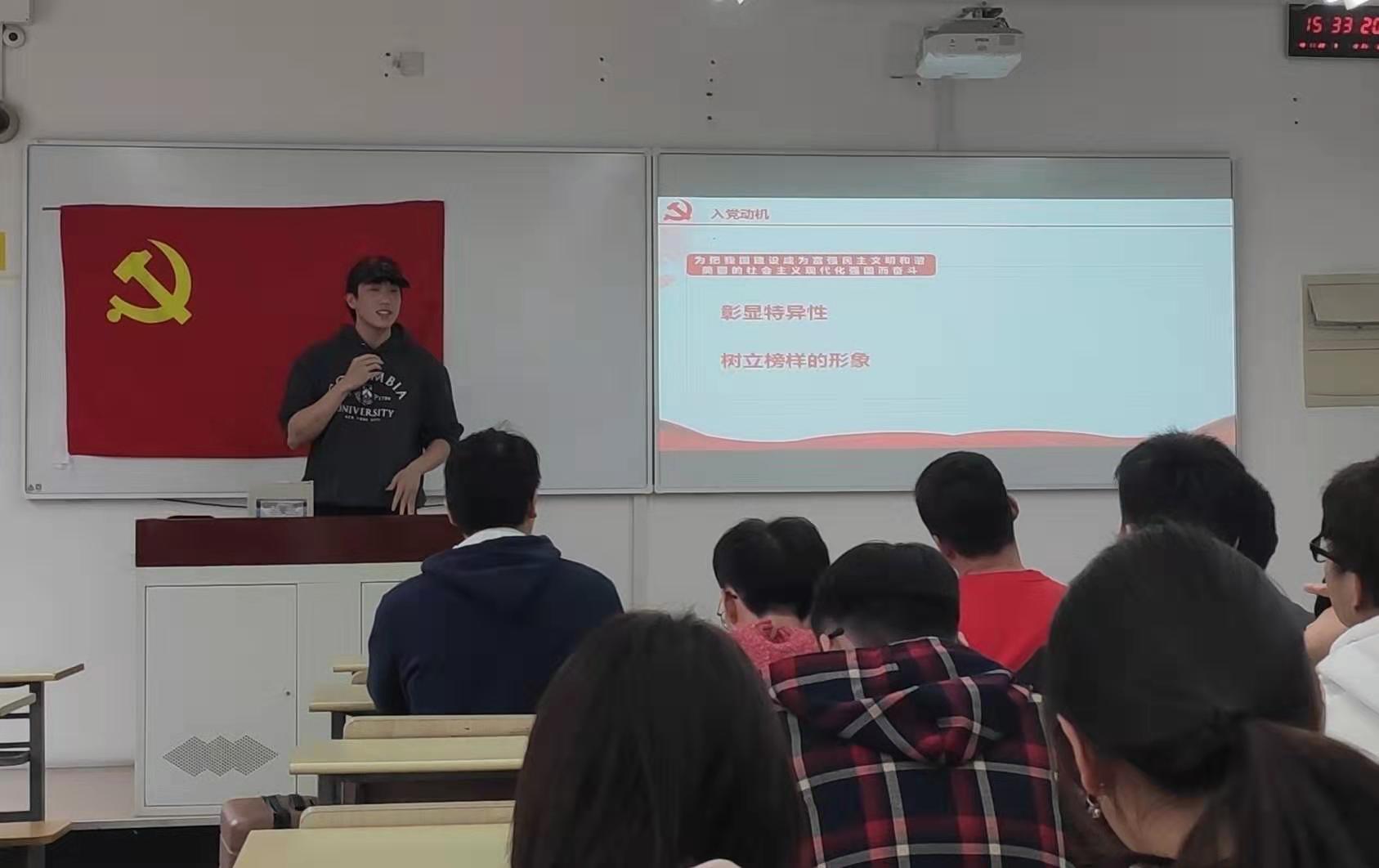 本次专题学习由支部预备党员吴立波、王皓晨主讲。吴立波围绕“保持共产党员先进性,发挥先锋模范作用”主题,从四个部分:党员的先进性是什么、为什么要保持党员的先进性、如何保持党员的先进性与预备党员培训班成果进行此次汇报。吴立波表示,共产党员应当具有的先进性,既是一种品质,又是一种能力,也是一种行为,更是品质、能力、行为三者的统一,三者有机统一才是先进性的真正魅力。大学生党员需要培养担当意识,挺身而出,做敢担当的有为青年;培养服务意识,认真学习领会“我将无我,不负人民”的精神。