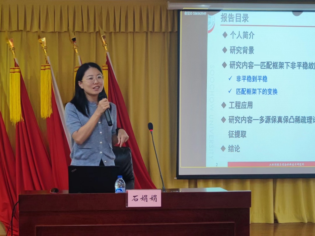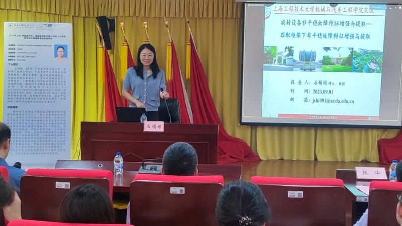 2023年9月1日10:30,在现代交通工程中心8B222,苏州大学轨道交通学院教授,博士生导师石娟娟为暑期学校做题为《旋转设备非平稳故障特征增强与提取》的线上线下专题讲座。线上通过华为云会议视频平台直播,本次讲座由PP电子游戏网站副院长刘新田主持。