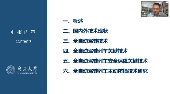 2023年9月9日9:30,通过华为云会议视频平台,邀请广西大学机械工程学院副院长、博士生导师贺德强教授为暑期学校做题为《智能列车及其关键技术研究》的线上专题讲座。讲座由PP电子游戏网站院长方宇教授主持。