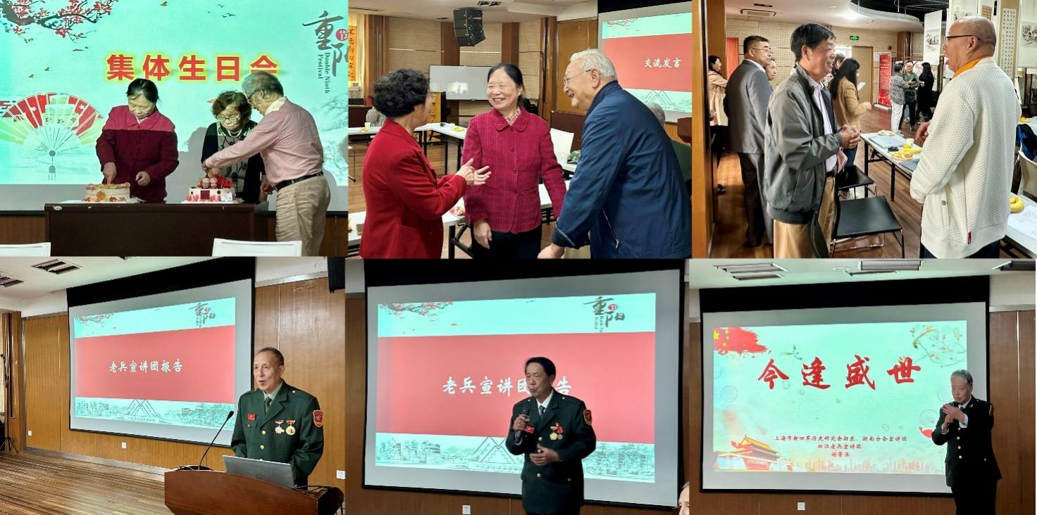 组织员叶寅汇报了关工委助力青年学生成长成才的实践研究情况。在集体生日会环节,学院精心准备了生日蛋糕,邀请退休教师代表共同切生日蛋糕,为离退休老同志庆祝集体生日。会上,特邀与学院长期合作的松江老兵讲故事宣讲团三位老兵来到现场,在欢度节日之时,老兵们从自身经历出发,为大家讲述革命故事,道出心里话,用教育和宣传的力量,让军人的优秀品质和坚韧精神扎根人心,鼓舞大家生逢盛世,更应该自强自立。
