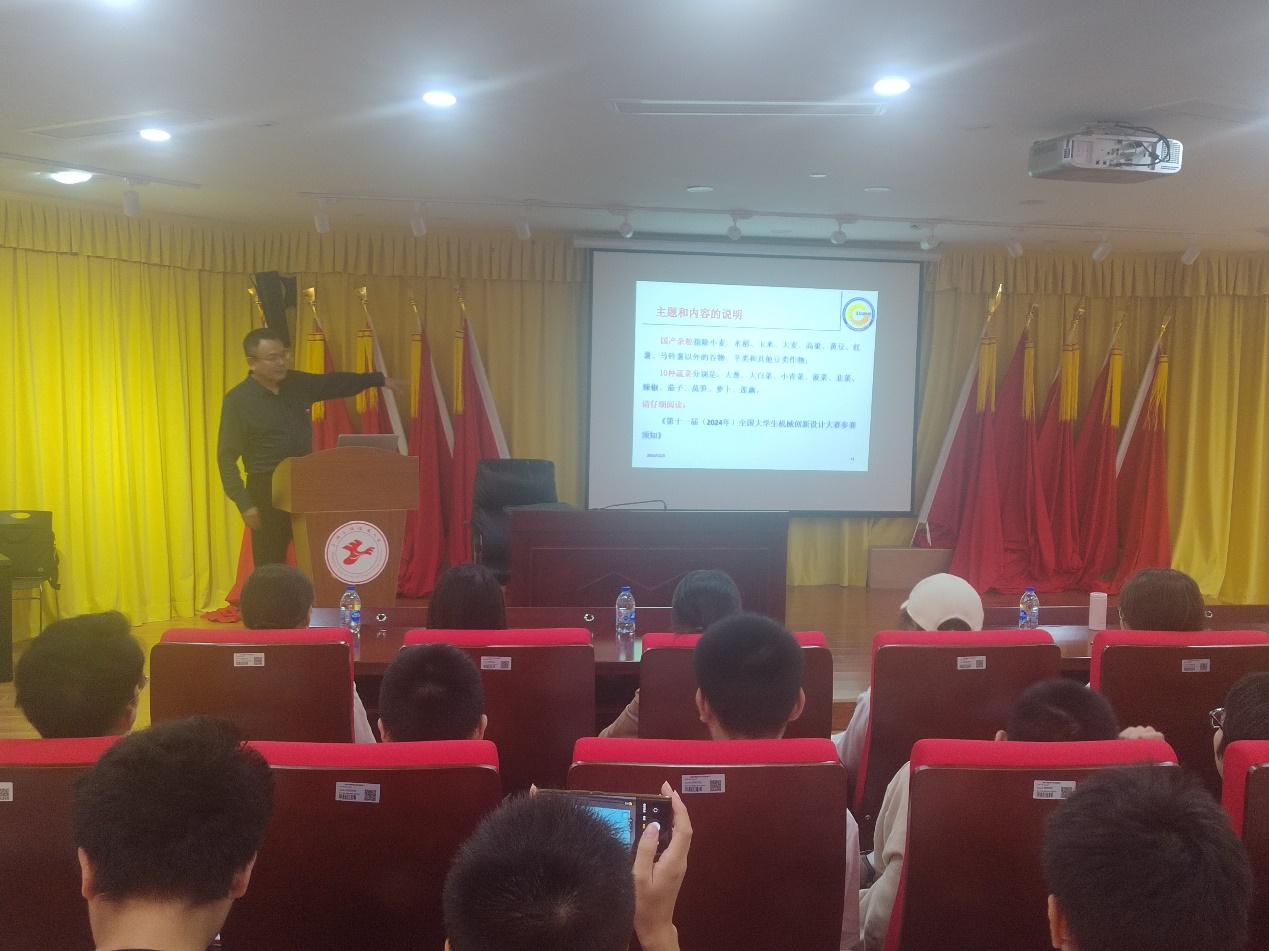 王晶教授向与会师生详细介绍了机械创新设计大赛近年来的发展与概况,并仔细解读了本届大赛的通知要求,对大赛主题进行了深度的分析。会上,王教授与师生们进行了热烈的互动交流,并耐心解答了学生们提出的疑惑与问题。