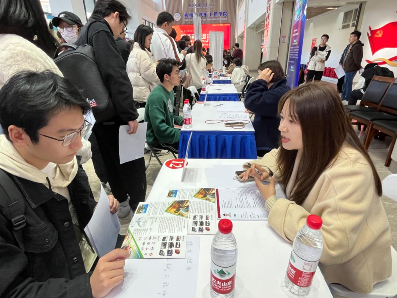 参与本次招聘会的企业有华域皮尔博格有色零部件(上海)有限公司、上海中国弹簧制造有限公司、上海汽车制动系统有限公司、上海纳铁福传动系统有限公司、华域动力总成部件系统(上海)有限公司等多家制造领域的500强或行业知名企业,提供了500余个就业岗位。现场气氛热烈,毕业生们“全副武装”、信心满满来到现场,将简历投递给心仪的企业与岗位,直接在现场与企业HR进行面试。机械制造系毕业生吴同学表示:“学院办的专场招聘会给我们搭了一个很好的就业平台,我能方便地直接和专业相关的企业HR对话,也让我更加直观清晰地了解行业需求和自己的定位。”对于企业而言,招聘会也是走进校园、了解大学毕业生求职意向的机会。不少企业的人事专员表示,线下招聘会比网上收简历更高效。据统计,学生现场投递简历约800余份,达成初步意向人数约200人次。
