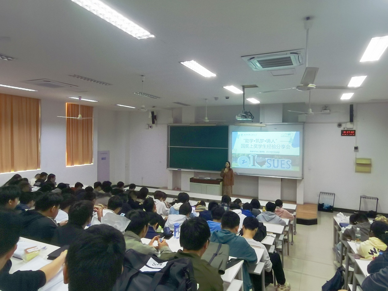 为提升资助工作育人实效,充分发挥优秀学生的示范引领作用,积极营造自立自强、拼搏向上、感恩奉献的校园文化氛围。PP电子游戏网站于11月22日在教学楼A517召开了以“助学、筑梦、铸人”为主题的国家奖学金、上海市奖学金获得者经验分享会。本次分享会由学院资助辅导员欧阳丽老师主持。