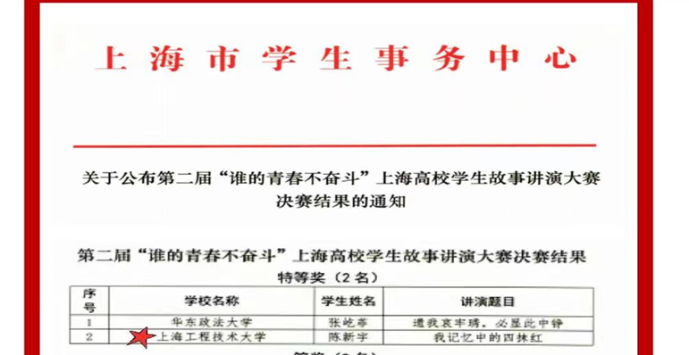 In addition, in order to further carry out the party's twentieth report of the spirit of the "strong youth, the country strong" speech, in-depth excavation of difficult students behind the touching inspirational stories. Mr. Huang Zhongzi, Deputy Secretary of Party Committee of the College, and Mr. Li Shi, Financial Aid Counselor of the College, guided Mr. Chen Xinyu, a student of Vehicle Engineering major of the College, to participate in the second "Who's Youth is not Struggling" Shanghai University Student Storytelling Competition. Chen Xinyu told the story of his youthful struggle for self-improvement with the support of the national financial aid policy under the title of "Four Splashes of Red in My Memory". The speech was based on the clues of "red shirt", "red flag", "red sunrise" and "red blood". The main character in the army, volunteer service and other important moments in the process of growth and success, cohesion of the national financial support policy of gratitude. In the end, Chen Xinyu won the Grand Prize in Shanghai with the first place in the total score. As a typical case of financial support and nurturing in the college, Chen Xinyu's excellent growth story is a good illustration of the college's efforts in financial support and nurturing work to practice the developmental work purpose of "Relieve the difficulties - Nurture the people - Become a success - Give back".