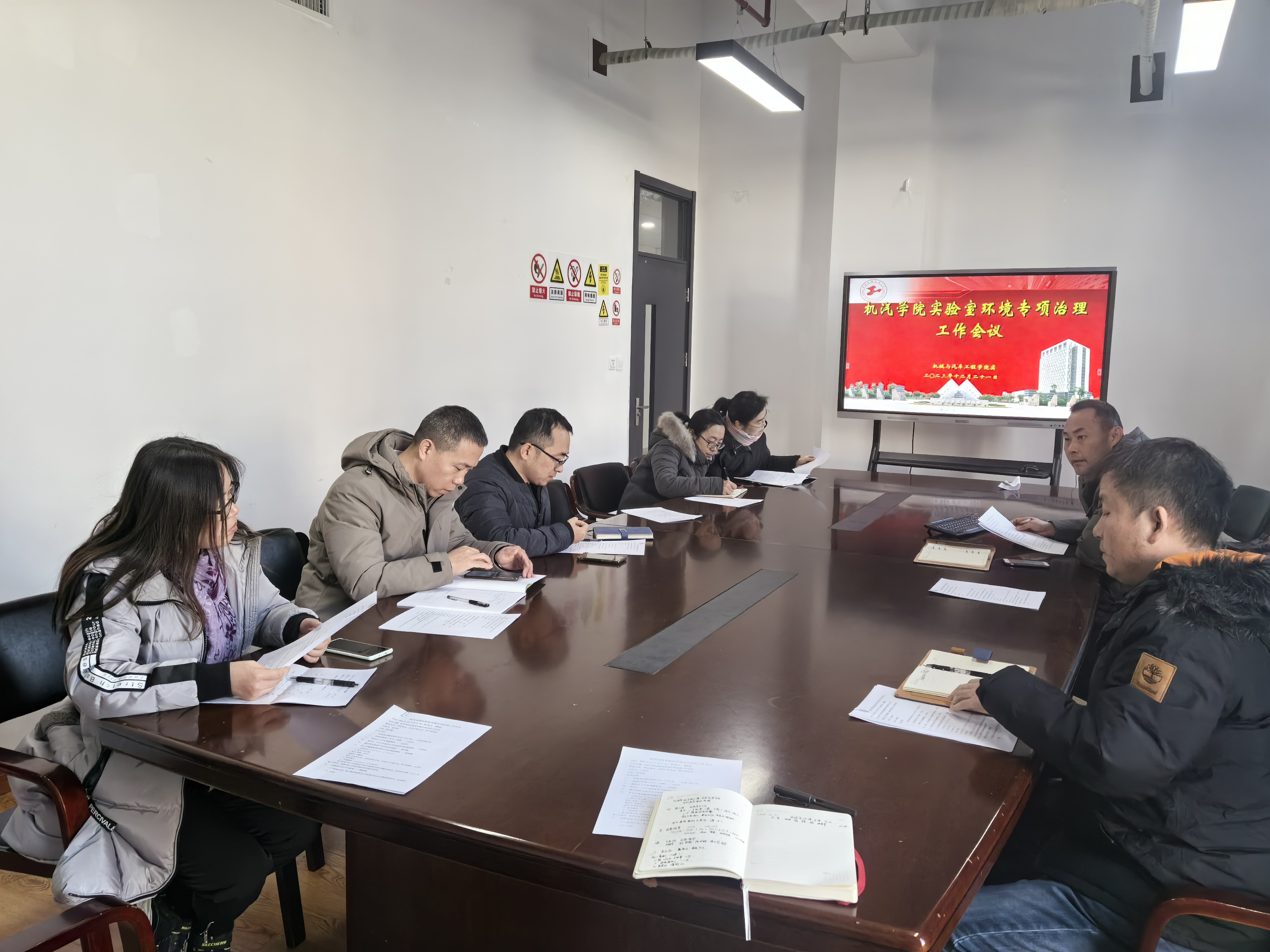 为扎实贯彻落实学院学习贯彻习近平新时代中国特色社会主义思想主题教育的工作部署安排,进一步改善和加强实验室环境状况,营造良好的教学、科研实验环境,确保实验室安全,消除安全隐患,20231221日下午机汽学院召开了实验室环境专项治理工作会议,会后方宇院长带领实验中心正副主任、各系分管实验室主任、安全员和实验中心全体教师对学院实验室进行了安全卫生检查。重点检查了实验室的卫生、有无杂物、私拉电线,以及仪器、化学试剂摆放和学生实验是否规范等情况。