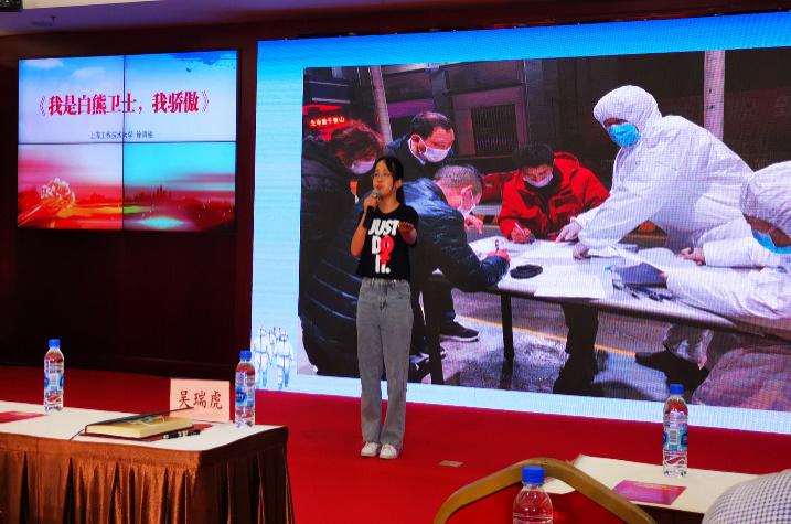 同时,有幸现场参加“讲抗疫故事,传红色基因——红色故事大讲堂”活动,来自PP电子游戏网站学生党员徐雨铭同志参加了故事展演,以《我是白熊卫士、我骄傲》为主题,讲述了自己参与疫情防控志愿者的亲身经历,展现了可爱可敬的身穿白色防护服的“白熊卫士”,在疫情防控的一线发生的真诚而感人的故事。现场情真意切的讲解,饱满有力的表演,热情高亢的演唱,从革命前辈身上学会担当作为,从抗疫故事中涵养家国情怀,鼓励要争做新时代新人,传承红色基因,坚定抗疫信心。