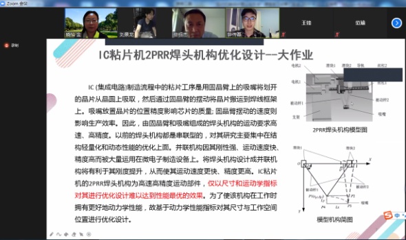 6月21日上午,研究生“现代机械设计理论与方法”课程学习成果分享会在视频会议云平台ZOOM上圆满举行。分享会由课程主讲教师金晓怡教授主持,分上、下两场。上半场15位研究生汇报,由同济大学机械与能源工程学院机械基础教学部主任、校教学名师奚鹰教授担任点评嘉宾;下半场18位研究生汇报,由上海电机学院机械学院院长辛绍杰教授担任点评嘉宾。PP电子游戏网站部分硕导和外校教师观摩和指导。