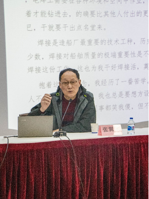 Inorder to promote the spirit of craftsmanship, show the demeanor ofmodel workers in the new era, realize that professional education andideological education go in the same direction, and improve theeffectiveness of practical education, on the afternoon of March 30,the School of Mechanical and Automotive Engineering invited nationalmodel workers and the winner of the Chinese Skills Award, 2016"Shanghai Craftsman"-Chief Welding Technician of ChinaShipbuilding Corporation and Chief Technician of Hudong ZhonghuaShipbuilding (Group) Co., Ltd. Zhang Yifei came to the school as aguest in the "Yangtze River Delta Lecture Hall" of ourschool and gave special lectures to teachers and students of theschool. Wang Dongyang, deputy secretary of the party committee of thecollege, presided over the lecture. Dean Zhang Hua and studentrepresentatives from various departments of the college attended thelecture.