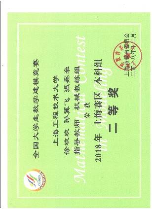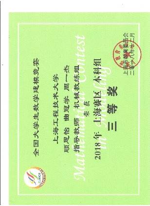5 | 第三届上海市大学生力学竞赛(团体赛) | 省部级一等奖 | 2018 | 上海市力学学会 |