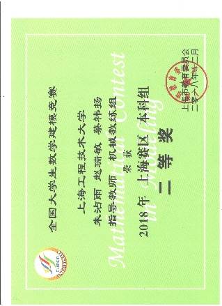 20 | 上海市大学生课外学术科技作品竞赛 | 省部级二等奖 | 2017 | 上海市教委 |