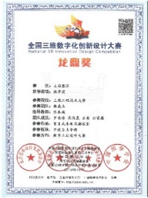 6 | 全国三维数字化创新设计大赛 | 国家级特等奖 | 2018 | 国家制造业信息化培训中心、全国三维数字化创新大赛组委会、中图学学会 |