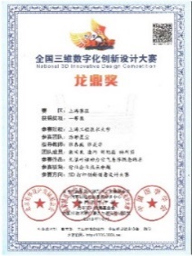 9 | 全国三维数字化创新设计大赛 | 国家级一等奖 | 2018 | 国家制造业信息化培训中心、全国三维数字化创新大赛组委会、中图学学会 |