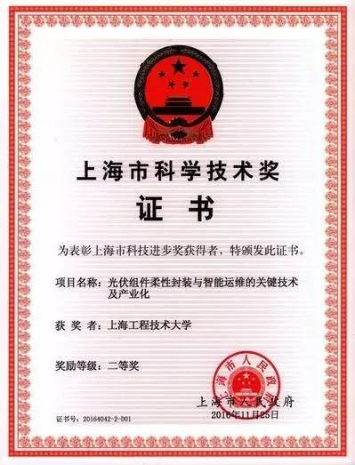 6 | 光伏组件柔性封装与智能运维的关键技术及产业化 | 上海市科学技术进步二等奖 | 黄晓波 | 2016 |