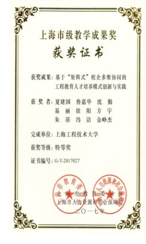 3 | 基于“矩阵式”校企多维协同的工程教育人才培养模式创新与实践 | 上海市教学成果奖特等奖 | 方宇 | 2017 |