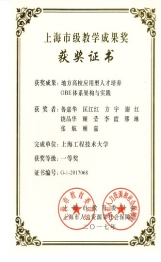 2 | 地方高校应用型人才培养OBE体系架构与实践 | 上海市教学成果奖一等奖 | 方宇 | 2017 |